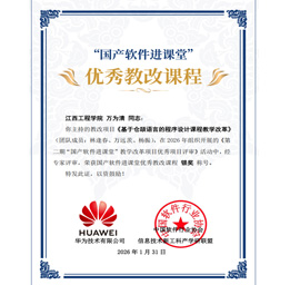 近日,中国软件行业协会与信息技术新工科产学研联盟联合公布了第二期“国产软件进课堂”教学改革项目优秀项目评审结果。我院教师万为清主持的《基于仓颉语言的程序设计课程教学改革》项目在全国众多参评项目中脱颖而出,荣获“优秀教改课程”银奖。这一成果标志着我校在推动国产软件融入教学体系、培养适配产业需求的创新型人才方面取得了国家级认可。此次获奖的还有复旦大学、北京工业大学、兰州大学等院校的教改项目。本次评审工作于2026年1月15日进行,由“国产软件进课堂”教改项目专家工作组组织。评审严格遵循既定规则,专家组通过听取在线汇报、现场点评,并结合项目指标完成数据进行综合评议,最终确定了获奖名单。万为清老师的项目凭借其创新的课程融合模式和显著的教改成果,成功获评银奖。“国产软件进课堂”教改项目旨在推动国产基础软件、工业软件等融入高校课程体系,探索并建立可推广的国产软件人才培养路径和教学模式。此次获奖,不仅是对老师个人教学改革实践能力的肯定,更是我校积极响应国家信息技术应用创新战略、深化产教融合的重要体现。项目将前沿的国产“仓颉”编程语言系统性地引入程序设计课程,对于提升学生的自主创新意识和解决复杂工程问