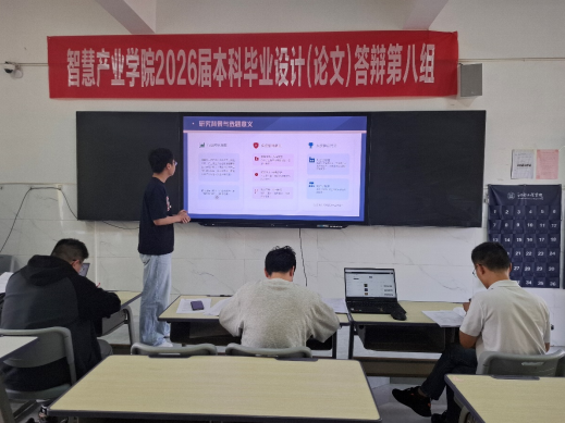 4月18日,智慧产业学院2026届本科毕业设计(论文)答辩在仙女湖校区教学楼C栋六楼顺利举行。本次答辩共分8个小组,来自软件工程、区块链工程两个专业的100余名毕业生参加答辩。